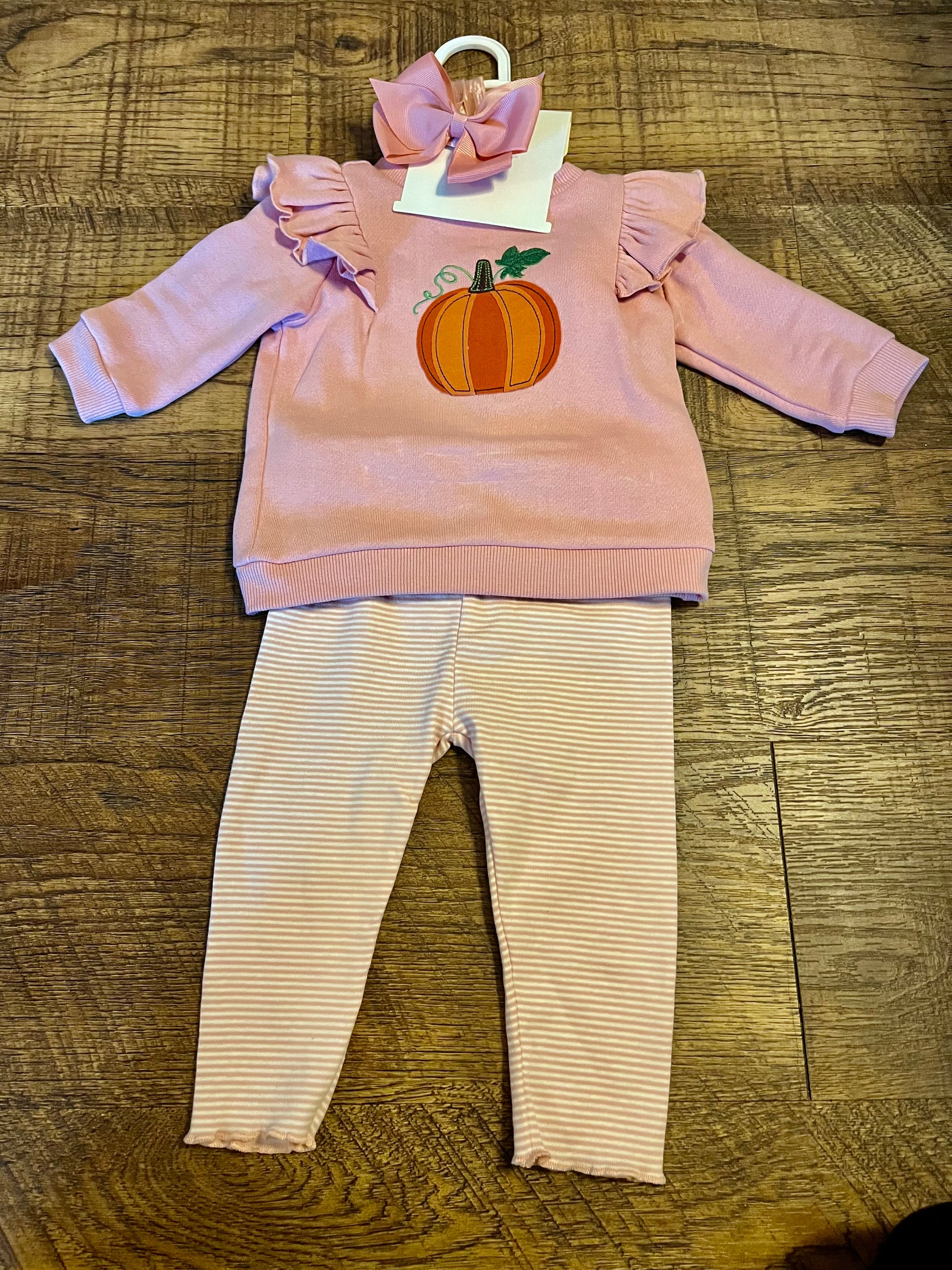 Your little one will look adorable in this Dillards Adventurewear pink pumpkin two piece outfit in a size 9 month.